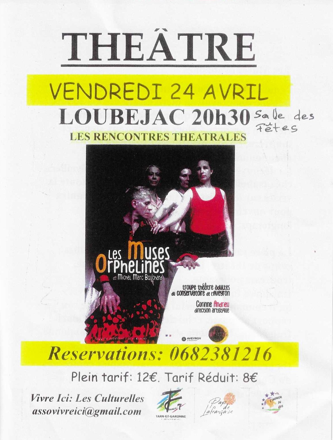 Le vendredi 24 Avril à la salle des fêtes de Loubéjac, dans le cadre des "Rencontres théâtrales" à 20h 30, une nouvelle pièce.
