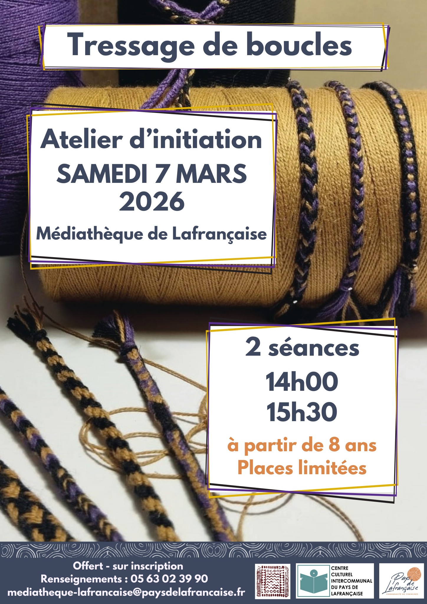 Atelier tissage de bracelet – Découverte du tressage de boucles Atelier animé par Manon LORGUE. À partir de 8 ans