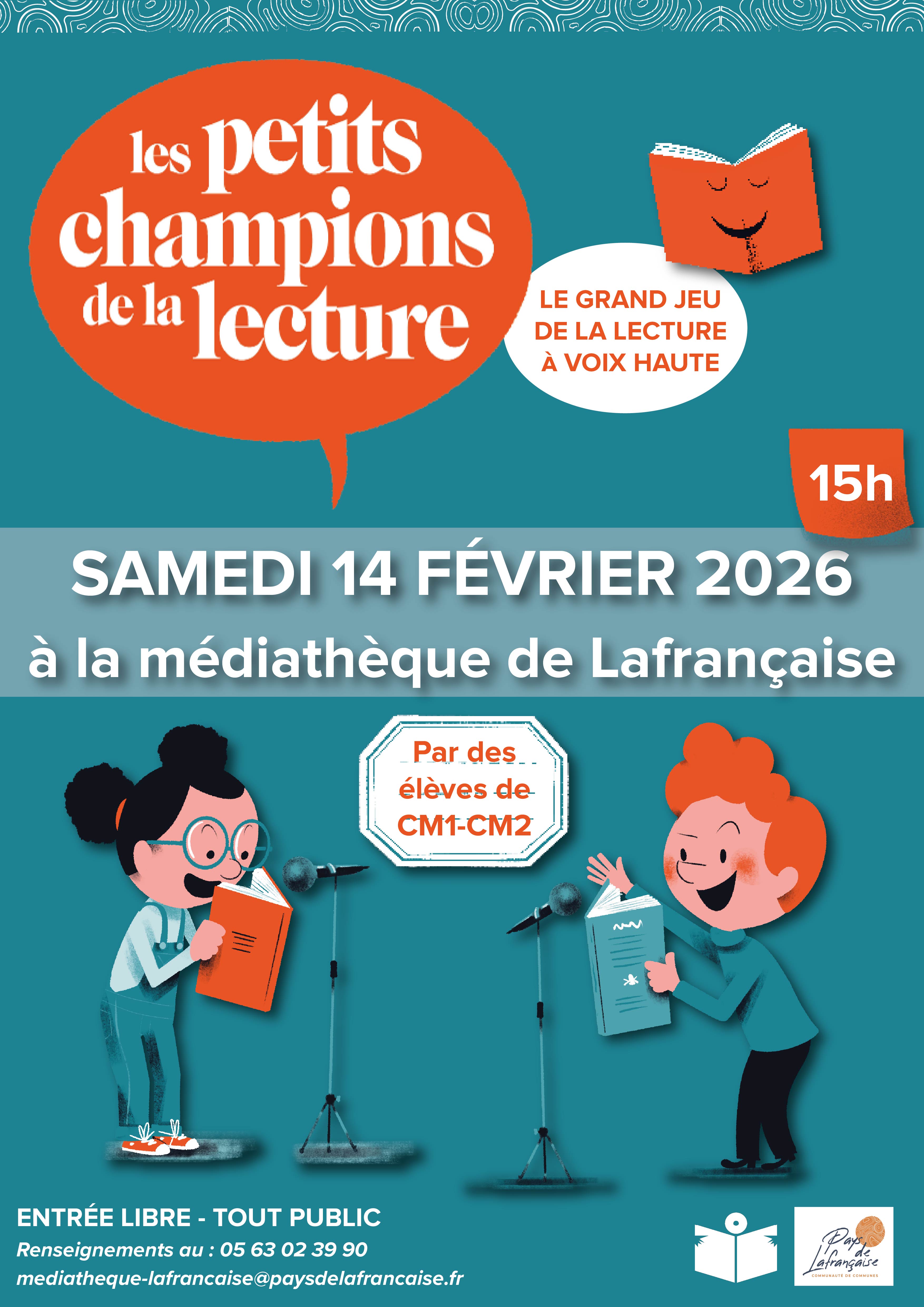 A tous les jeunes lecteurs de CM1et CM2, rdvs le samedi 14 février 2026 à 15h à la médiathéque de Lafrançaise.