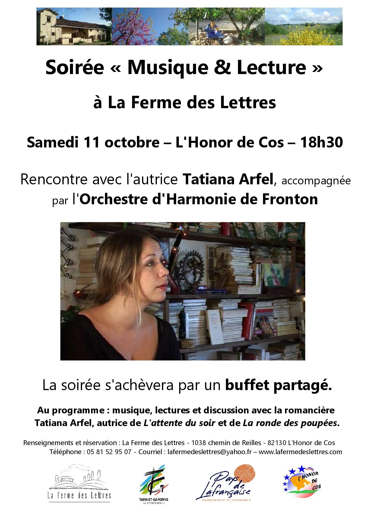 Samedi 11 octobre à 18h30 à la Ferme des Lettes. Buffet partagé à l'issue.