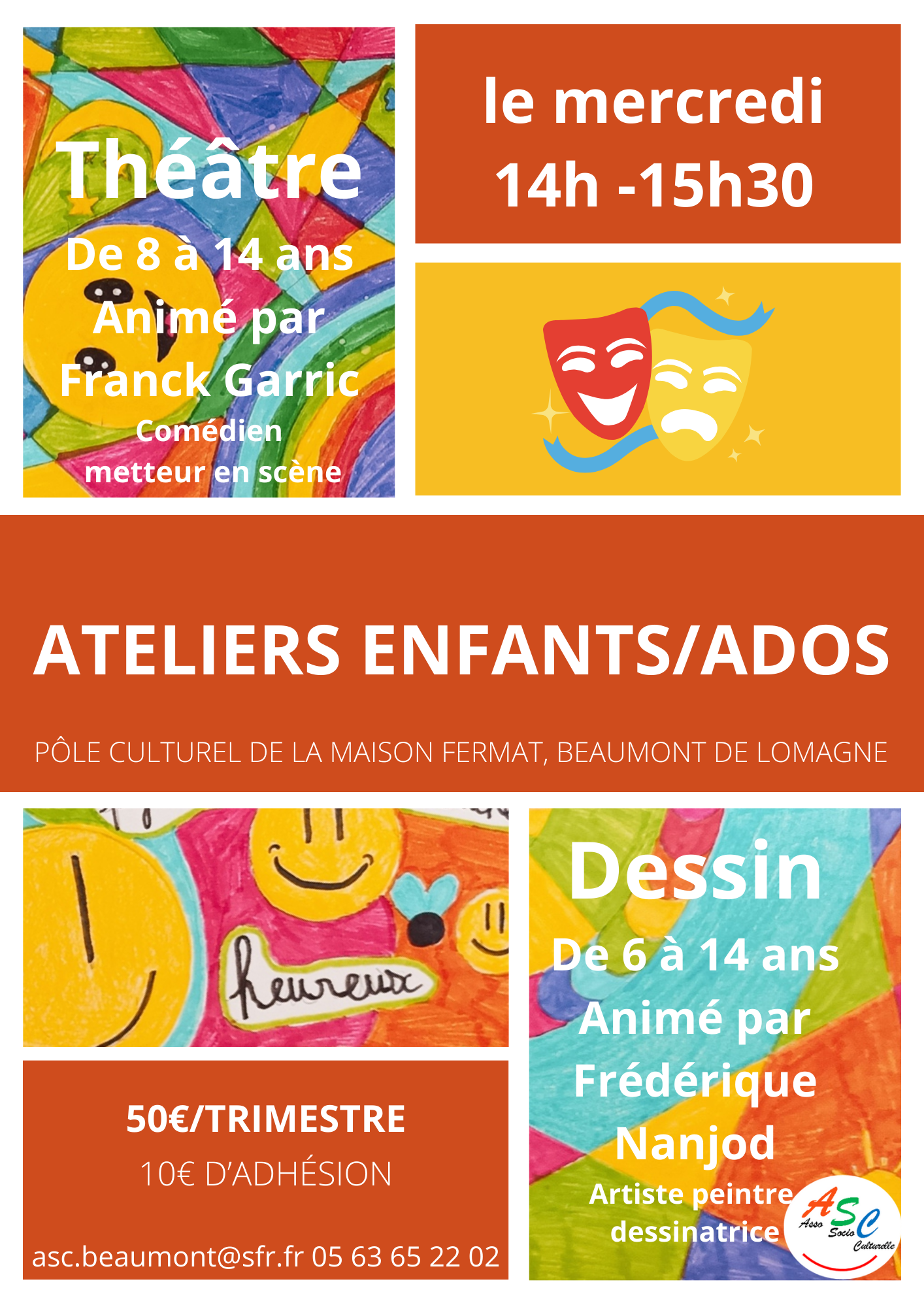Maison Fermat à Beaumont : Ateliers théâtre et dessin pour enfants de 8 à 14 ans