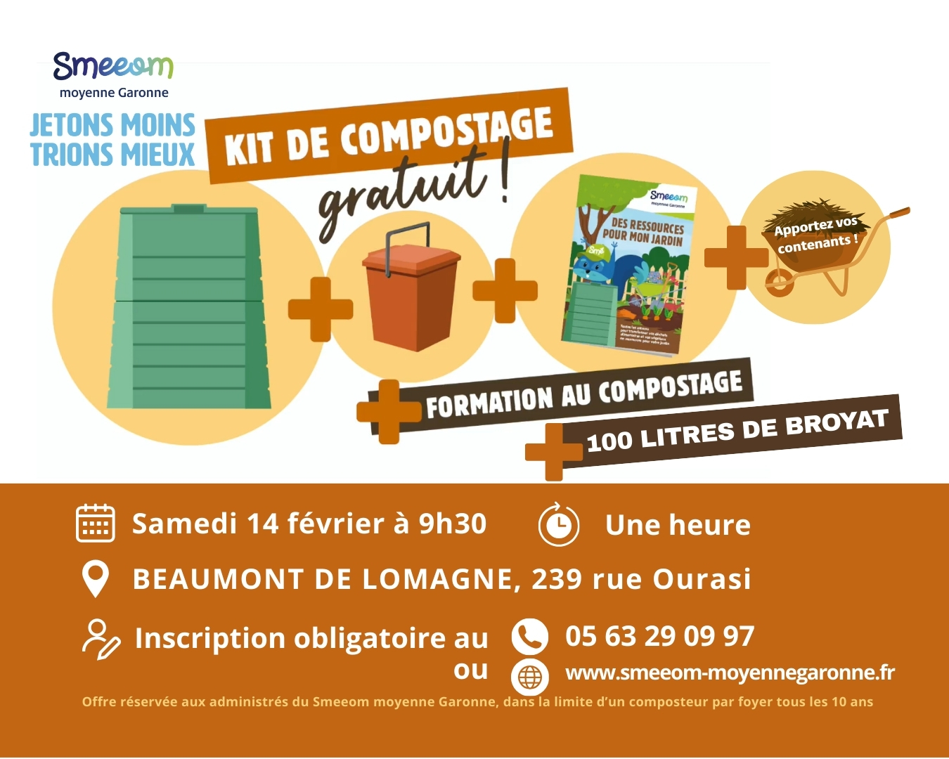 Session de distribution de composteurs du 14 février à 9h30, dans nos locaux à Beaumont-de-Lomagne