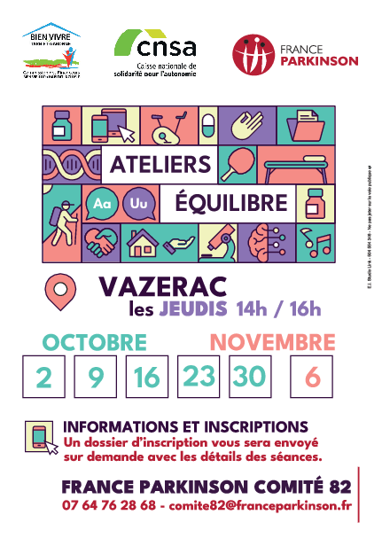 Le Comité 82 de FRANCE PARKINSON propose un atelier "Equilibre et prévention des chutes" dans le cadre du Bien Vieillir, atelier subventionné par la...