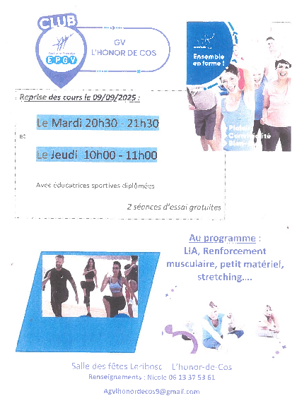Reprise des cours le mardi 9 septembre 2025. Voir ci-contre le flyer