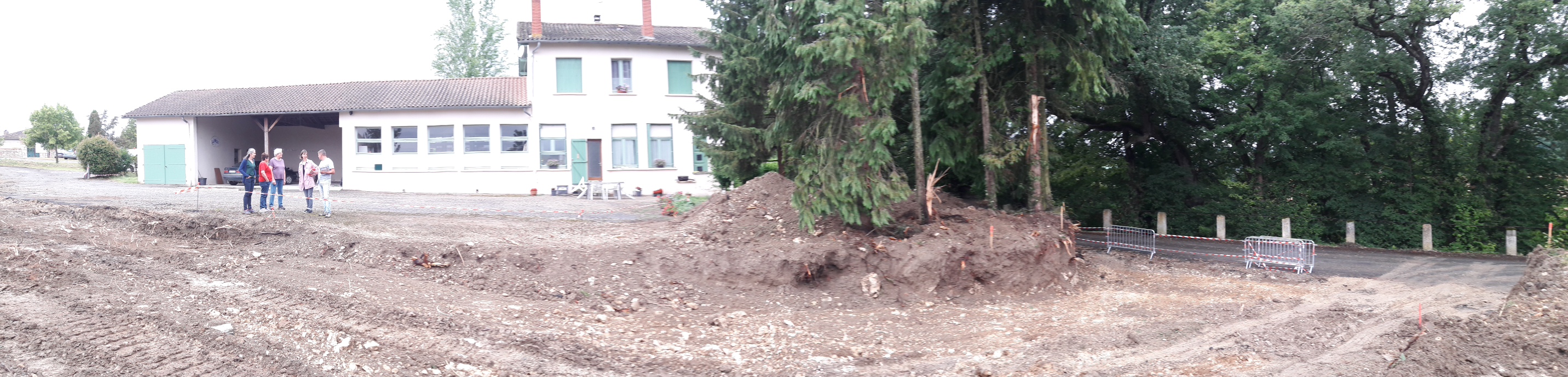 Le mur a été démoli, et la zone terassée pour un accès direct au parking au niveau du panneau d'entrée du village, juste avant le bâtiment de l'ancienne école.