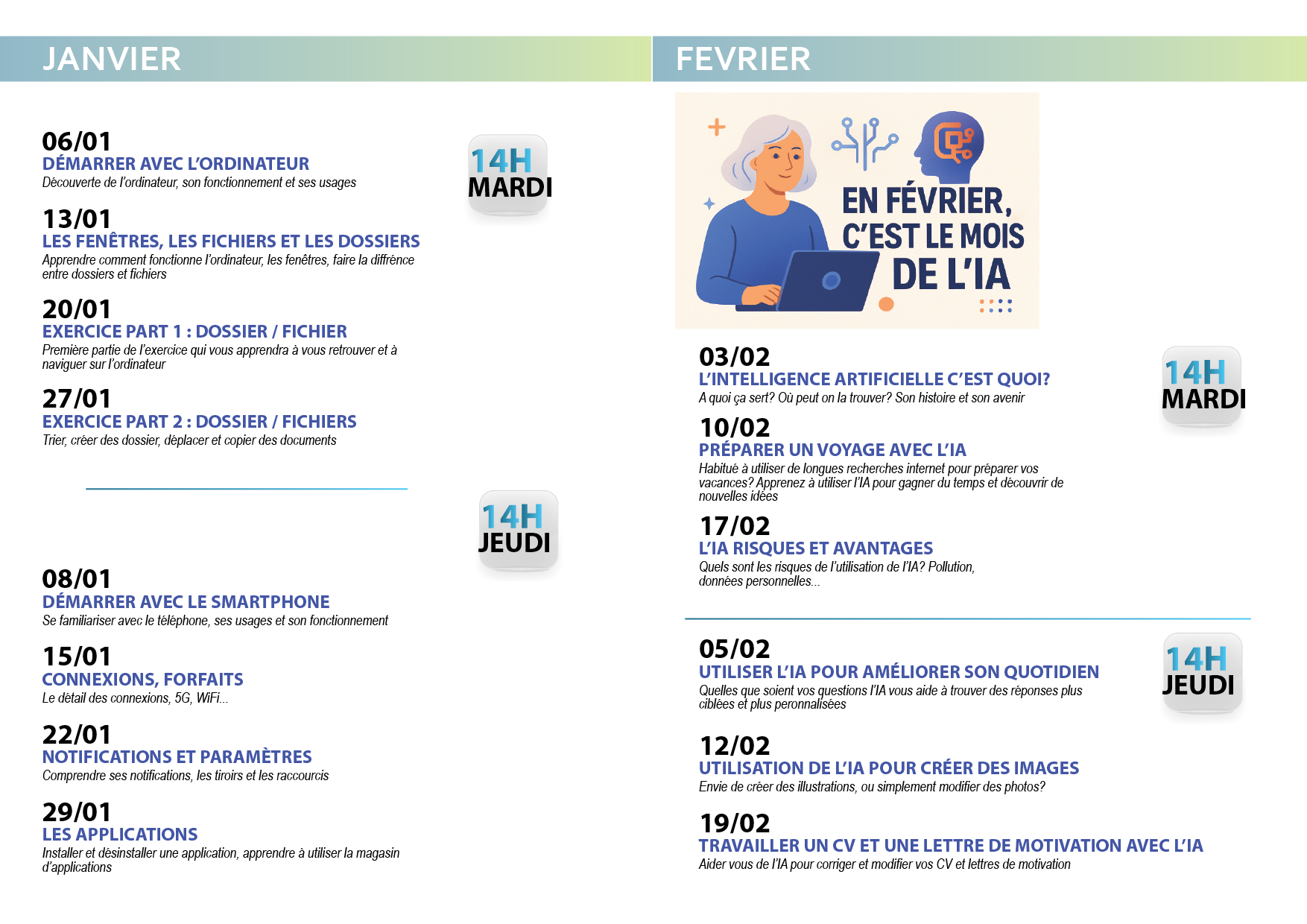 ateliers informatique individuel et personnalisé à la médiathèque de St Etienne-de-Tulmont.