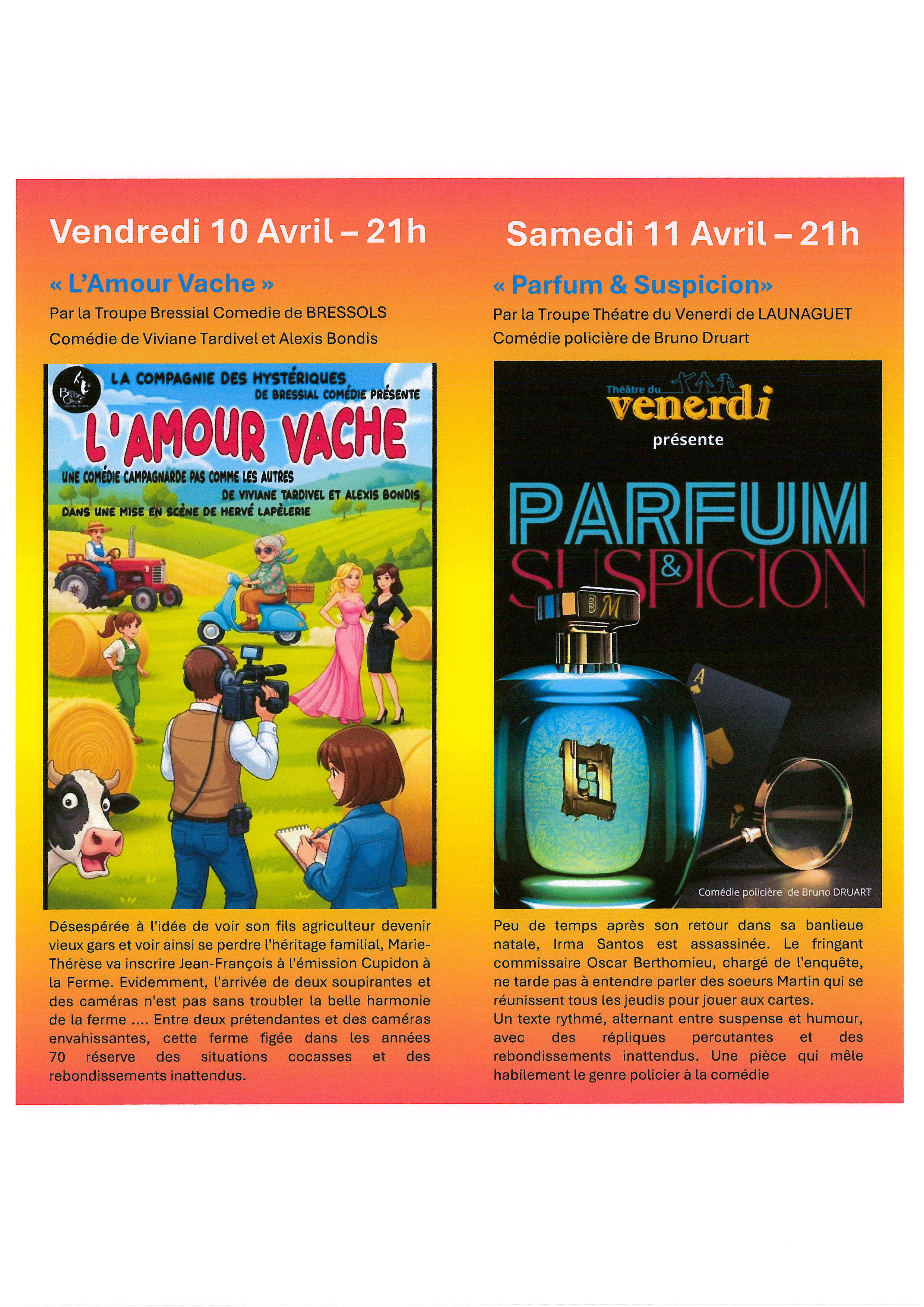 vendredi 10 avril et samedi 11 avril 2026 à la salle des fêtes de St Caprais